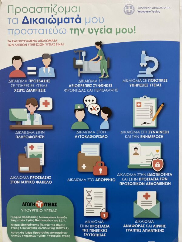 Η Ευρωπαϊκή Ημέρα για τα δικαιώματα των ασθενών τιμάται κάθε χρόνο στις 18 Απριλίου και αφορά το θεσμικό πλαίσιο που διέπει τα δικαιώματα των ασθενών και των ληπτών υπηρεσιών υγείας. Η Υγεία είναι θεμελιώδες ανθρώπινο δικαίωμα και κατοχυρώνεται σε Σύμφωνα και Συμβάσεις των Διεθνών Οργανισμών, στο Χάρτη Θεμελιωδών Δικαιωμάτων της Ευρωπαϊκής Ένωσης, στο Σύνταγμα της Ελλάδας και στην Ελληνική νομοθεσία. Η προστασία των χρηστών των υπηρεσιών υγείας κατοχύρωσε τη θέσπιση δικαιωμάτων των ασθενών με βάση τα κοινωνικά και επιστημονικά δεδομένα για τη βελτίωση της υγείας και της ποιότητας ζωής των πολιτών. Τα Δικαιώματα των ασθενών αποτελούν ελευθερίες που προβλέπονται και προστατεύονται από το Ελληνικό Σύνταγμα και αφορούν δικαιώματα των πολιτών ως Χρηστών των Υπηρεσιών Υγείας.