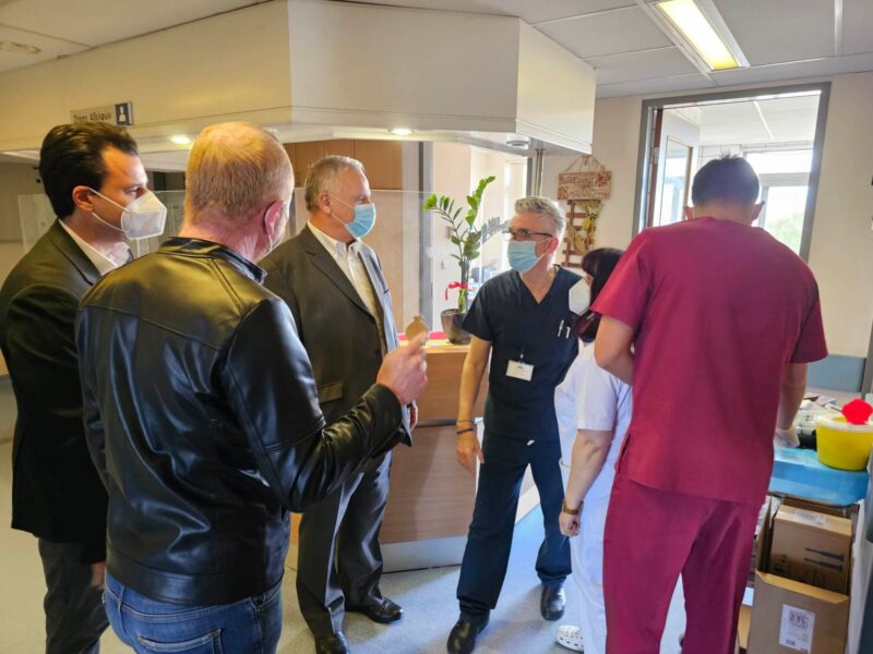 Το πρωί της Τετάρτης, ο πρώην νομάρχης και βουλευτής της ΝΔ και εκ νέου υποψήφιος επισκέφτηκε το τοπικό νοσηλευτικό ίδρυμα, έχοντας συναντήσεις με την διοίκηση και το προσωπικό.