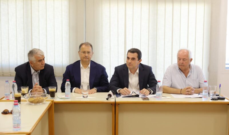 Με τη διοίκηση και τα μέλη του Επιμελητηρίου Άρτας, αλλά και με επαγγελματικούς φορείς της πόλης συναντήθηκε την Παρασκευή 31 Μαΐου 2024 o Υπουργός Ανάπτυξης Κώστας Σκρέκας, συνοδευόμενος από τον Βουλευτή Άρτας της Νέας Δημοκρατίας, Γιώργο Στύλιο και τον Γραμματέα Αποκεντρωμένης Διοίκησης Ηπείρου – Δυτικής Μακεδονίας Σεραφείμ Λιάπη.