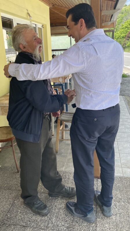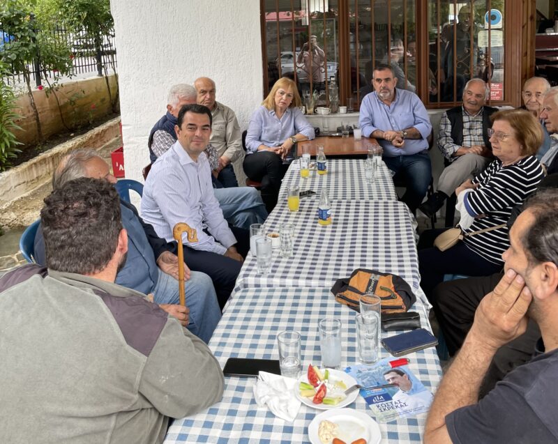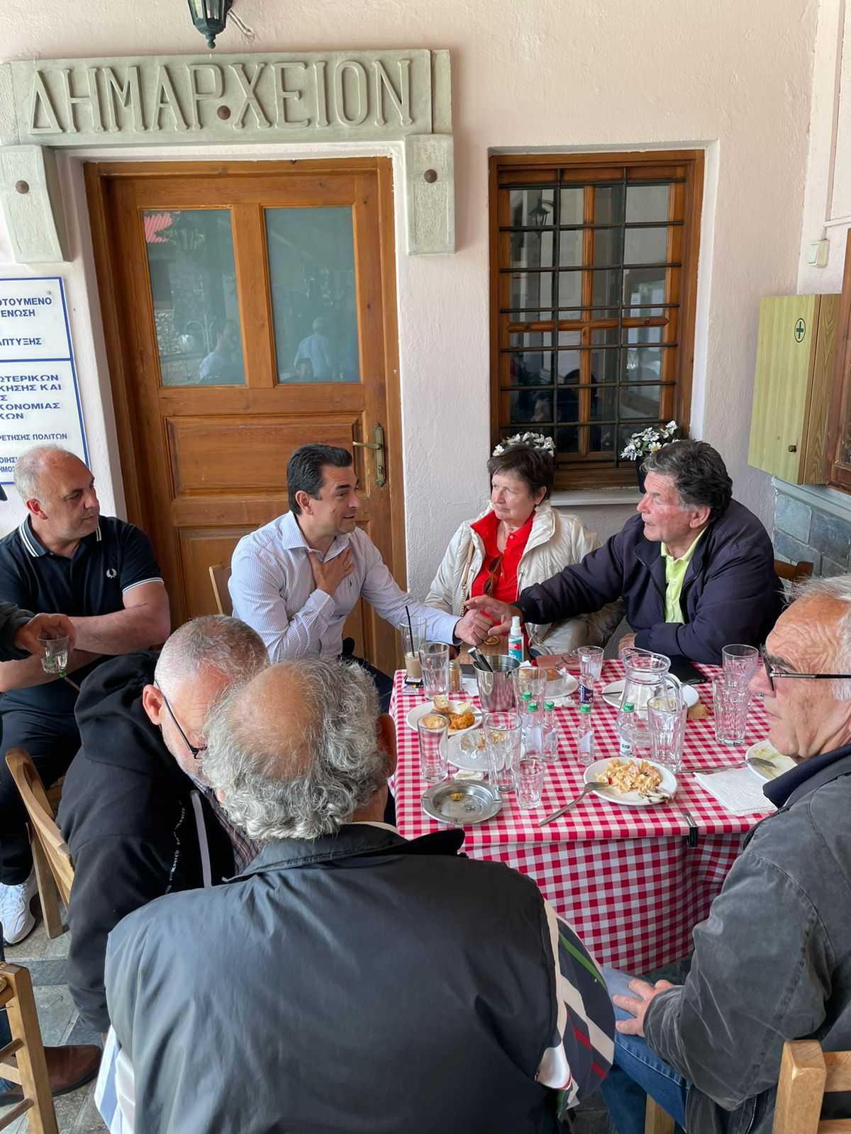Παράλληλα, συζήτησε με τους κατοίκους, κτηνοτρόφοι και γεωργοί στην πλειονότητά τους, τα προβλήματα του πρωτογενούς τομέα: «Η περαιτέρω ανάπτυξη και στήριξη της ελληνικής περιφέρειας αποτελεί προτεραιότητα για τον Κυριάκο Μητσοτάκη. Στόχος μας είναι τα χωριά μας να μην ερημώσουν αλλά, αντίθετα, να αποκτήσουν ξανά ζωή, με νέες θέσεις εργασίας για τους νέους. Γιατί η καρδιά της Ελλάδας χτυπάει στην ελληνική περιφέρεια».