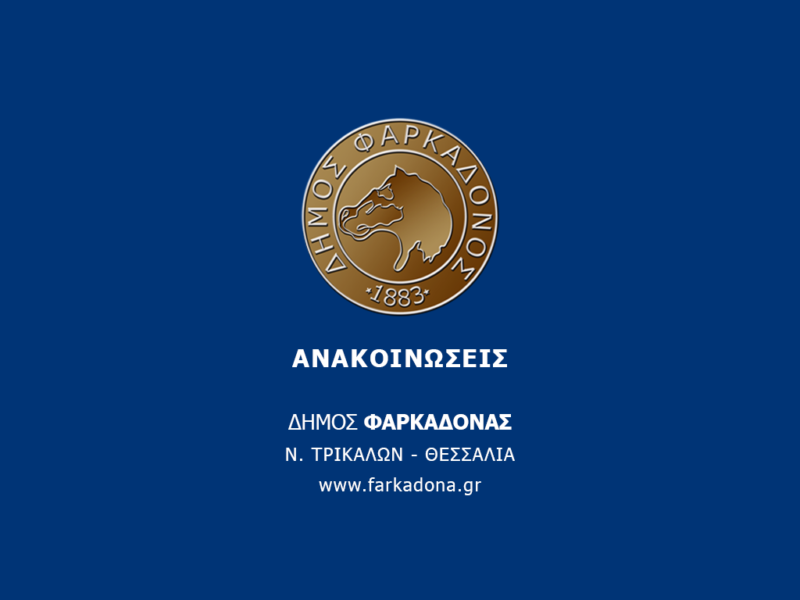 Παρακαλούνται όσοι ενδιαφέρονται να βοηθήσουν με δωρεές τον Δήμο Φαρκαδόνας να επικοινωνούν με τον Αντιδήμαρχο Ιωάννη Γεωργολόπουλο