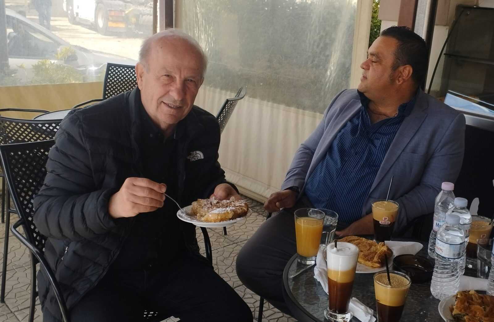 Μια στάση για καφέ και μπουγάτσα πραγματοποίησε ο Χρήστος Σιμορέλης σε τοπική επιχείρηση των Τρικάλων.
