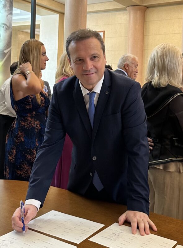 Στο περιθώριο της τελετής, ο Βουλευτής του τόπου μας, πραγματοποίησε πολλές και σημαντικές συναντήσεις με τους Υπουργούς, όπως με τον νέο Υπουργό Αγροτικής Ανάπτυξης και Τροφίμων, κ. Λευτέρη Αυγενάκη και με τον νέο Υπουργό Οικονομικών, κ. Κωστή Χατζηδάκη. Άμεσα μάλιστα θα εκκινήσουν και οι συναντήσεις εργασίας τους, με σκοπό να τεθούν και να αναζητηθούν λύσεις σε ζητήματα του τόπου και των συμπολιτών μας.