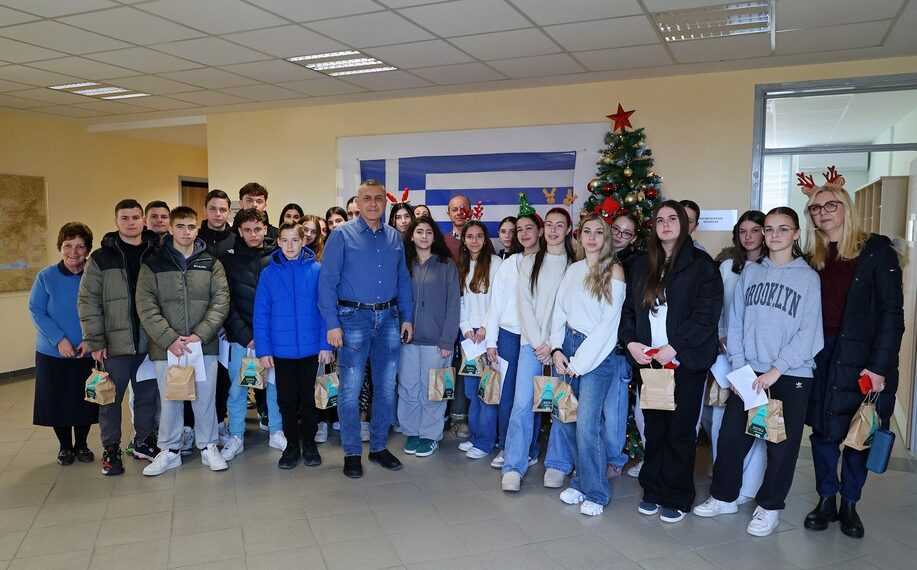 Το εορταστικό κλίμα κορυφώθηκε με την παρουσία μαθητών της Α΄ και Β΄ Λυκείου του 12ου Γενικού Λυκείου Λάρισας, οι οποίοι τραγούδησαν χριστουγεννιάτικα κάλαντα στα γερμανικά και τα γαλλικά, προσφέροντας χειροποίητα στολίδια και ευχές. Ο Δημήτρης Κουρέτας αντάμειψε τους μαθητές με δώρα και τους ευχήθηκε καλές γιορτές, υπενθυμίζοντάς τους τη σημασία της ξεκούρασης και της ισορροπίας στις γιορτινές ημέρες.