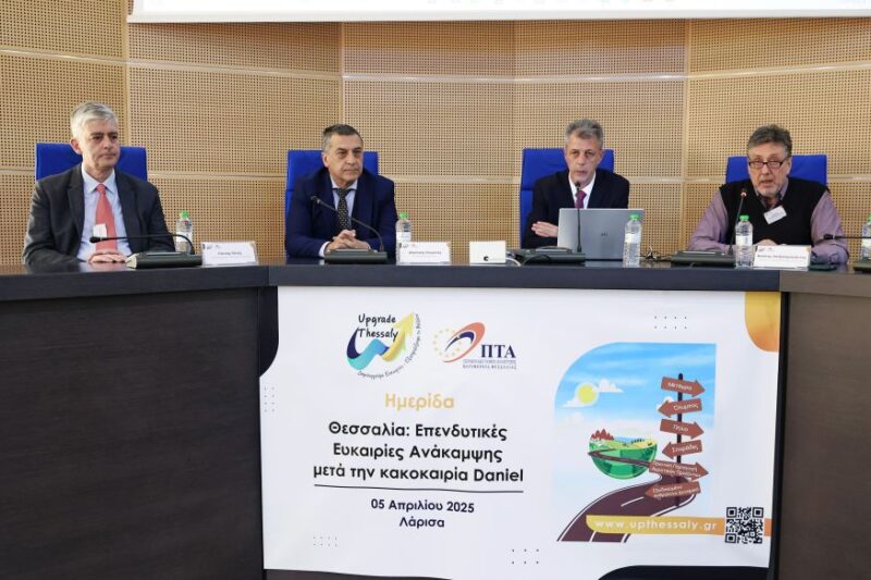 Ελπιδοφόρο είναι το μήνυμα της ημερίδας που πραγματοποιήθηκε σήμερα, Σάββατο 5 Απριλίου, με τίτλο «Η Θεσσαλία ως κέντρο επενδυτικών ευκαιριών», στην αίθουσα του Περιφερειακού Συμβουλίου Θεσσαλίας (Καλλισθένους και Θεοφράστου, Λάρισα) και που είχε ως στόχο την ανάδειξη των στρατηγικών ανάπτυξης της περιοχής, τις επενδυτικές προοπτικές και τα διαθέσιμα χρηματοδοτικά εργαλεία που μπορούν να στηρίξουν την ανάκαμψη της Θεσσαλίας, μετά την καταστροφή του Daniel.