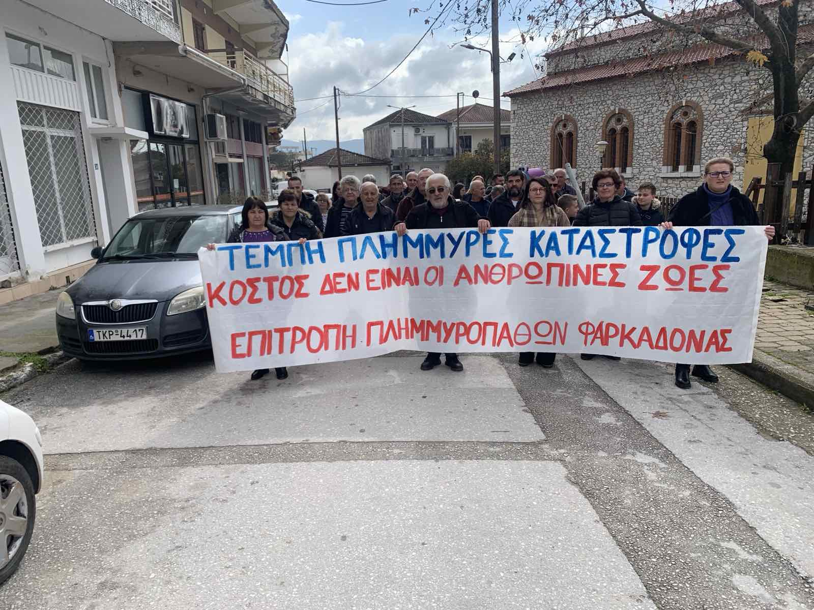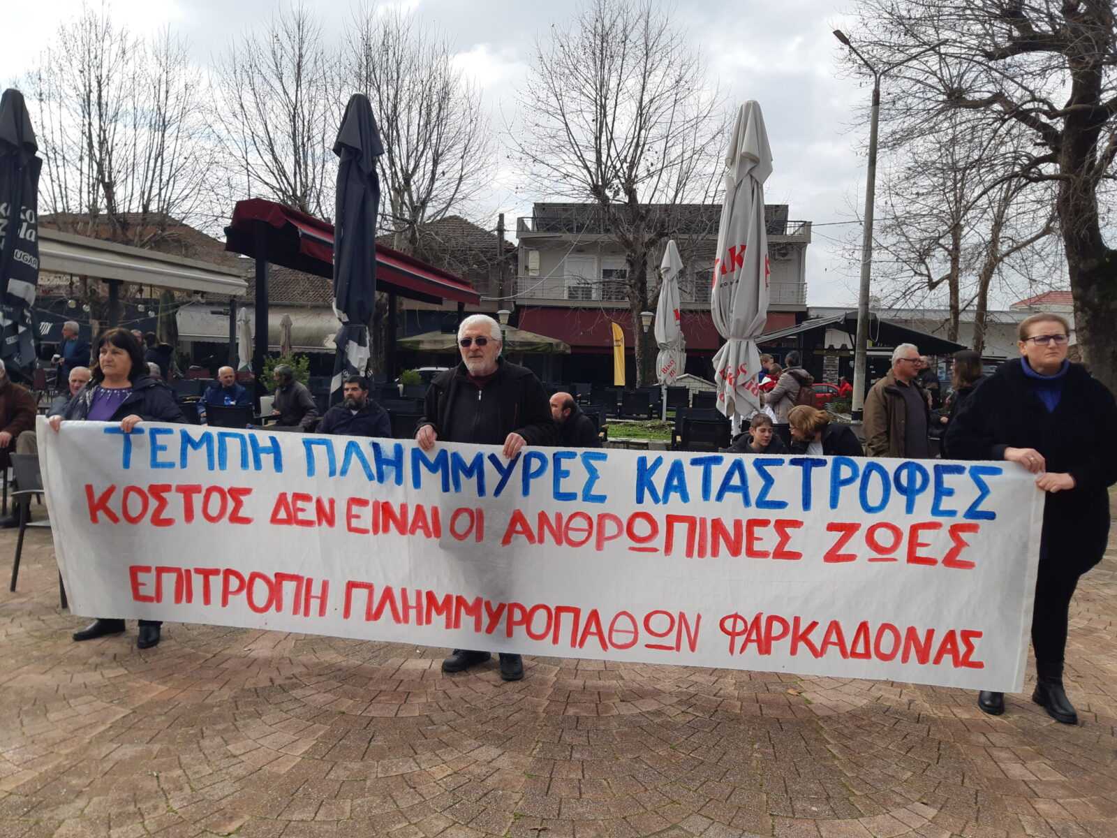 Η Επιτροπή Πλημμυροπαθών Φαρκαδόνας χαιρετίζουμε τη σημερινή μαζική κινητοποίηση στην κεντρική πλατεία. Ήδη από τις 11 το πρωί πλήθος συντοπιτών συμμετείχε δηλώνοντας μ΄ αυτήν την οργή και την αγανάκτησή τους για τις αιτίες και τους αίτιους του εγκλήματος των Τεμπών που στοίχισε τη ζωή σε 57 ανθρώπους.