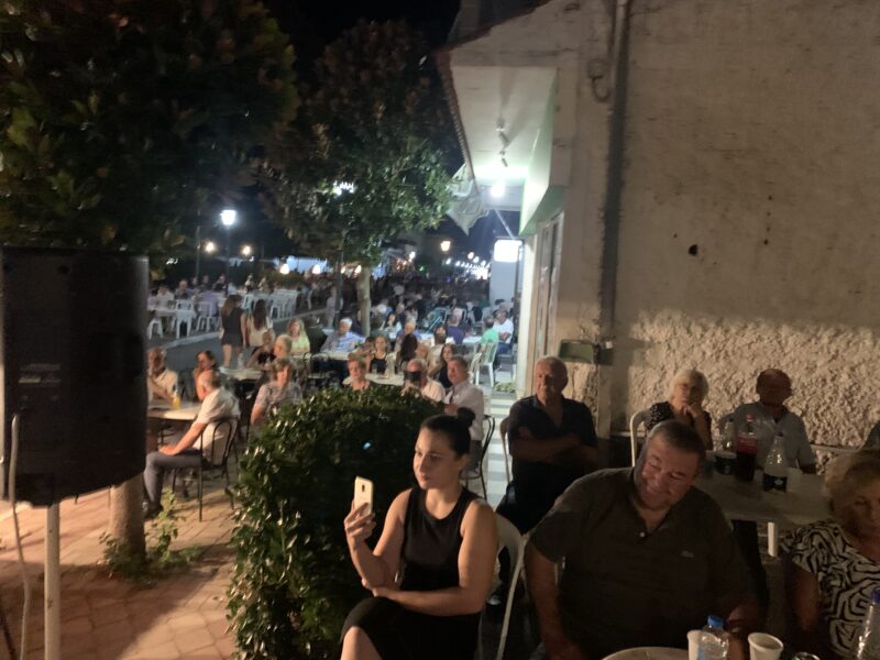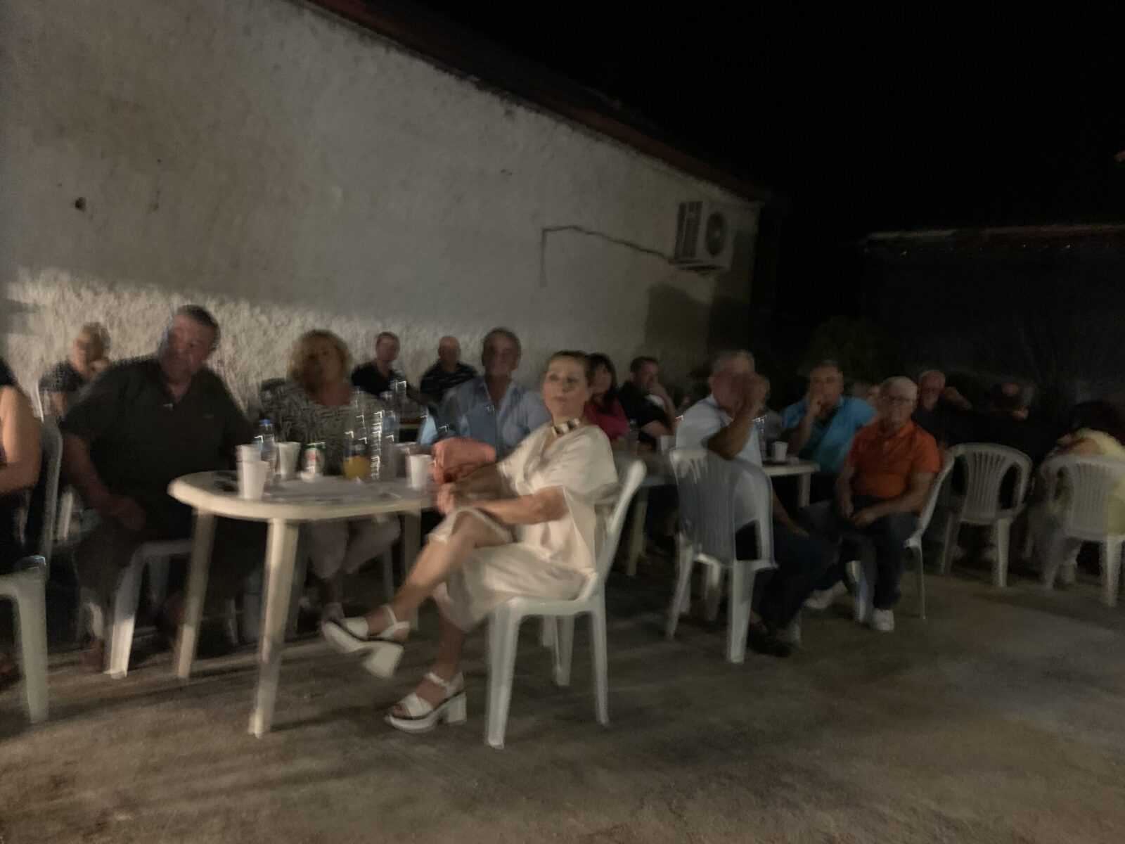 Τουλάχιστο 150 άτομα γέμισαν ασφυκτικά τον αύλειο χώρο του Εκλογικού Κέντρου ή καθίσματα του παρακείμενου καταστήματος. Ενώ τουλάχιστο 2-3 εκατοντάδες ακόμα άτομα παρακολούθησαν την ομιλία από τα συνεχόμενα καταστήματα.