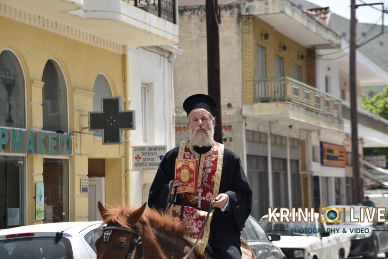 Η εικόνα μεταφέρθηκε με άλογα και καβαλάρηδες με επικεφαλής τον ίδιο τον ιερέα, ο οποίος πάνω στο άλλο και κρατώντας στα χέρια του το Ιερό Ευαγγέλιο, προεξήρχε της πομπής. Η αναβίωση ξεκίνησε αμέσως μετά την Θεία Λειτουργία και κέντρισε, όπως άλλωστε ήταν αναμενόμενο τα βλέμματα των πιστών.