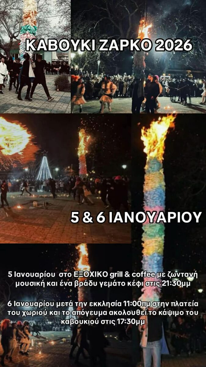 Αναβιώνει και φέτος, ανήμερα και την παραμονή των Θεοφανίων, ένα από τα αρχαιότερα και πιο εντυπωσιακά έθιμα της Ελλάδας, στο Ζάρκο. Μικροί και μεγάλοι θα συμμετάσχουν στην αναβίωση του «Μπουλουκιού» ή αλλιώς «Καβουκιού», ενός δρώμενου με βαθιές ρίζες στον χρόνο, που κάθε χρόνο κεντρίζει το ενδιαφέρον επισκεπτών από ολόκληρη τη Θεσσαλία.