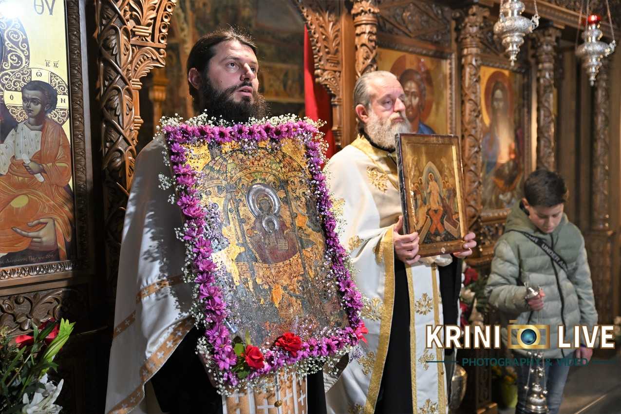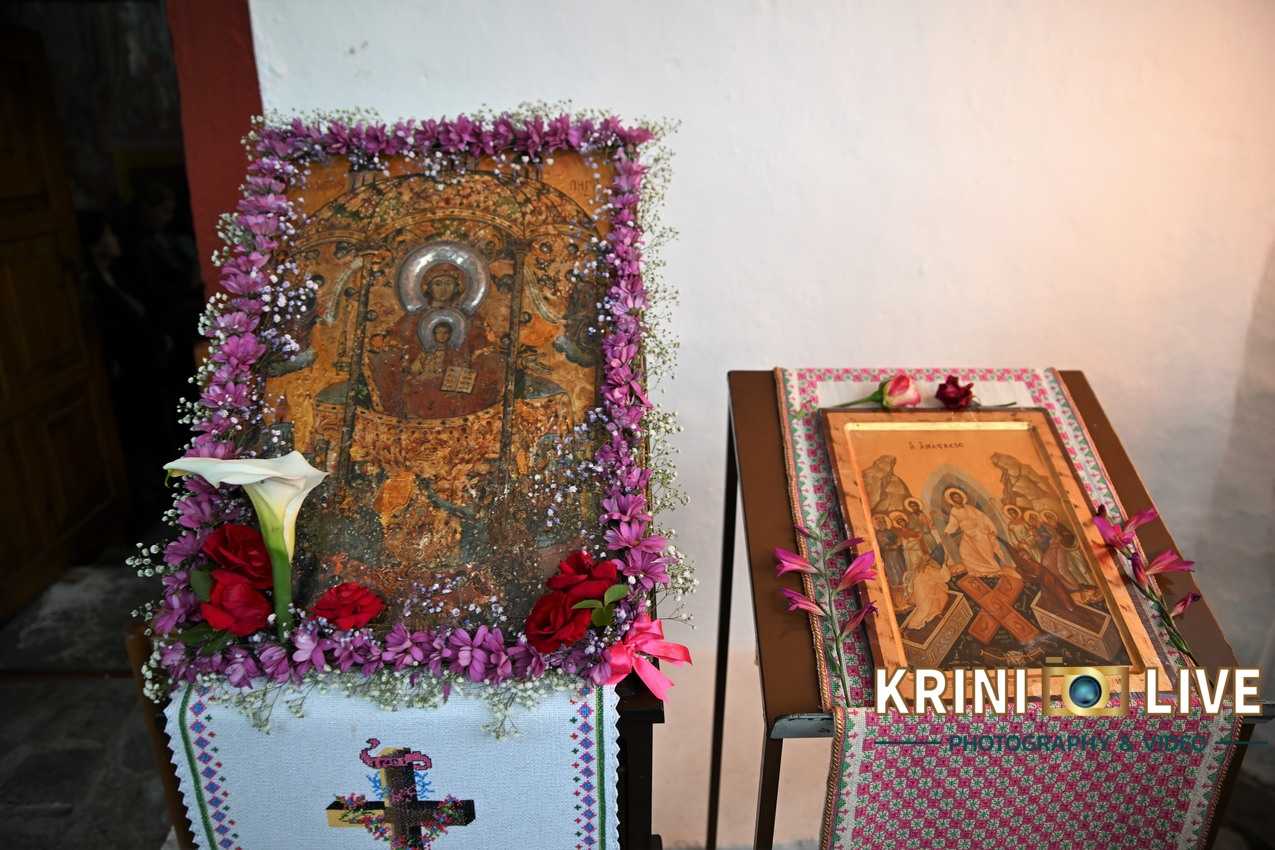 Τα πλήθη των πιστών, σύμφωνα με την «Krini Live» υποδέχτηκε η σεβάσμια γερόντισσα Αλεξία, ο αμίμητος φρουρός του μοναστηριού, η ηγουμένη, που κρατά άσβεστο το καντήλι της Θαυματουργού Εικόνας που φυλάσσεται στο μοναστήρι.