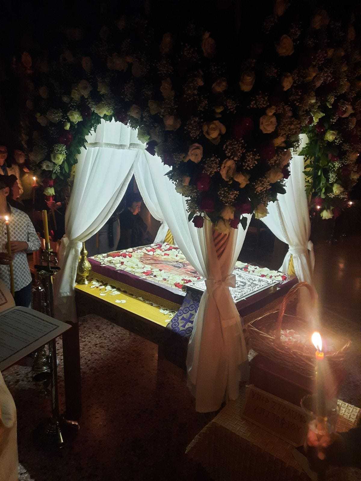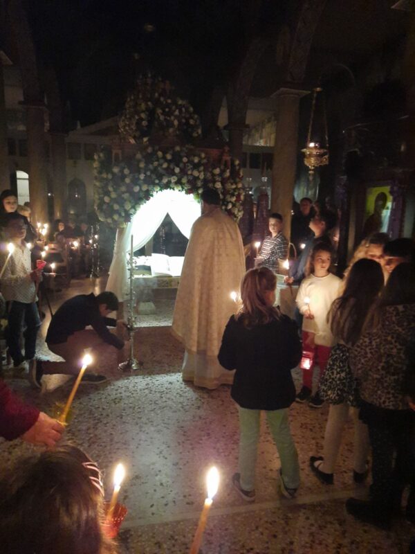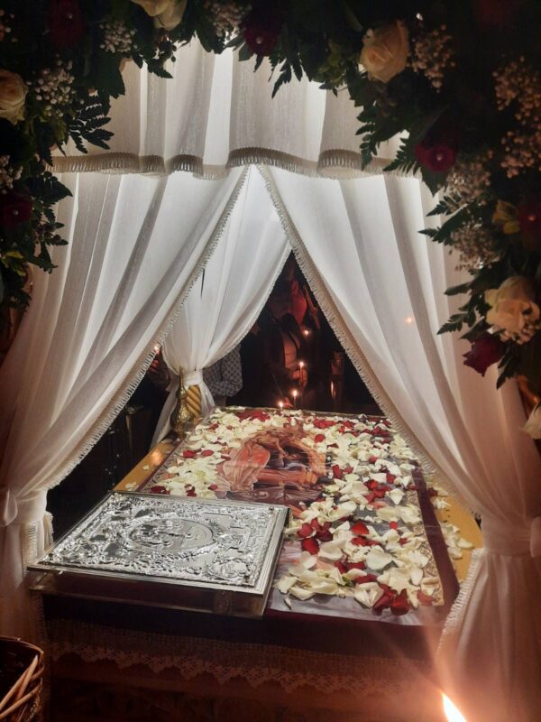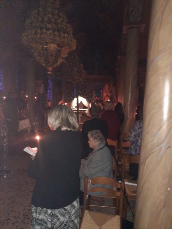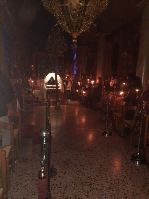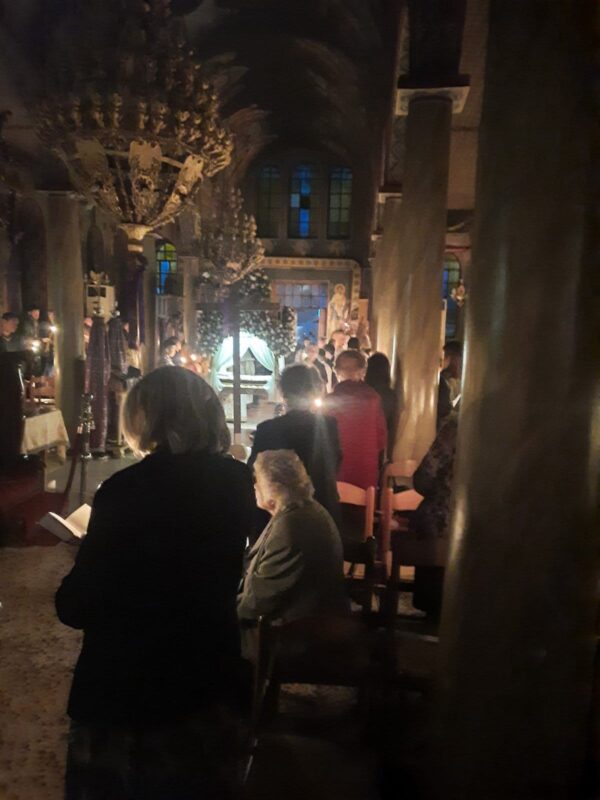Λίγο μετά το βράδυ της Μεγάλης Παρασκευής, ο Επιτάφιος εξήλθε του ναού για την περιφορά με τους πιστούς να τον συνοδεύουν ψάλλοντας τα εγκώμια και προσδοκώντας το βράδυ του Μεγάλου Σαββάτου την Ανάσταση.