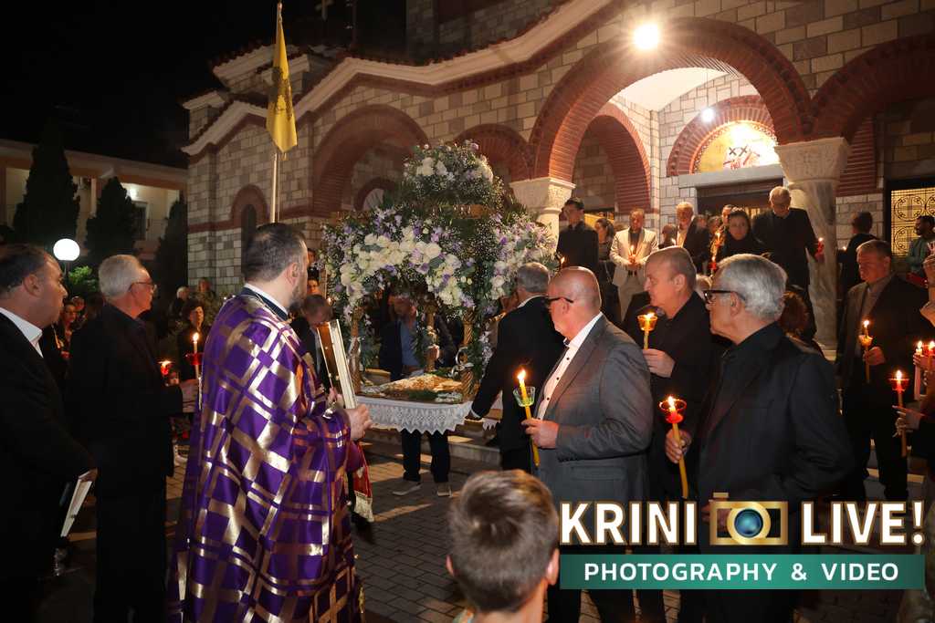 Λίγο μετά τις 9 το βράδυ ο Επιτάφιος συνοδευόμενος από τους πιστούς περιφέρθηκε πέριξ του οικισμού. Παιδιά κάθε ηλικίας και ενήλικες περιτριγύριζαν τον Επιτάφιο και έψελναν εγκώμια του επιτάφιου θρήνου.