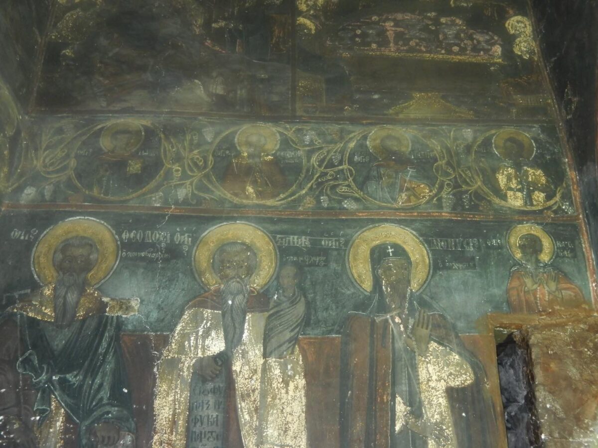 Στο χαγιάτι της εκκλησίας σώζονται επίσης αγιογραφίες, οι οποίες χρονολογούνται στο 1883, έτος-ορόσημο, καθώς συμπίπτει με την απελευθέρωση της Θεσσαλίας. Οι παραστάσεις αυτές αποτελούν πολύτιμο ιστορικό και καλλιτεχνικό τεκμήριο της εποχής.