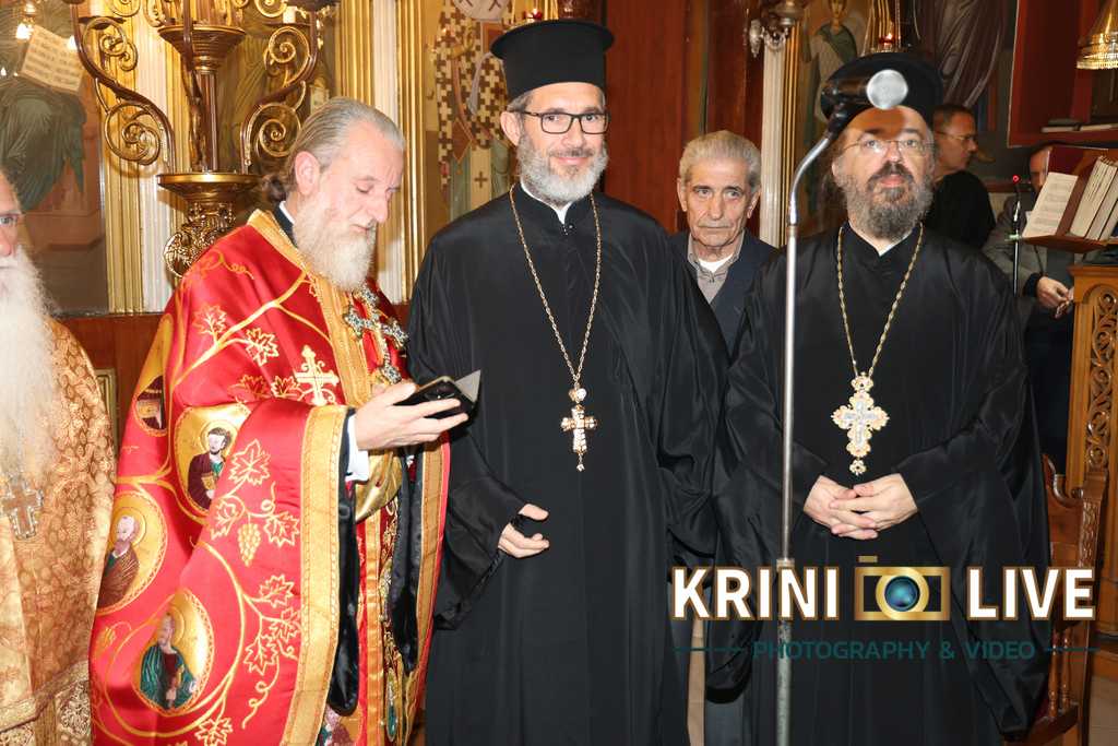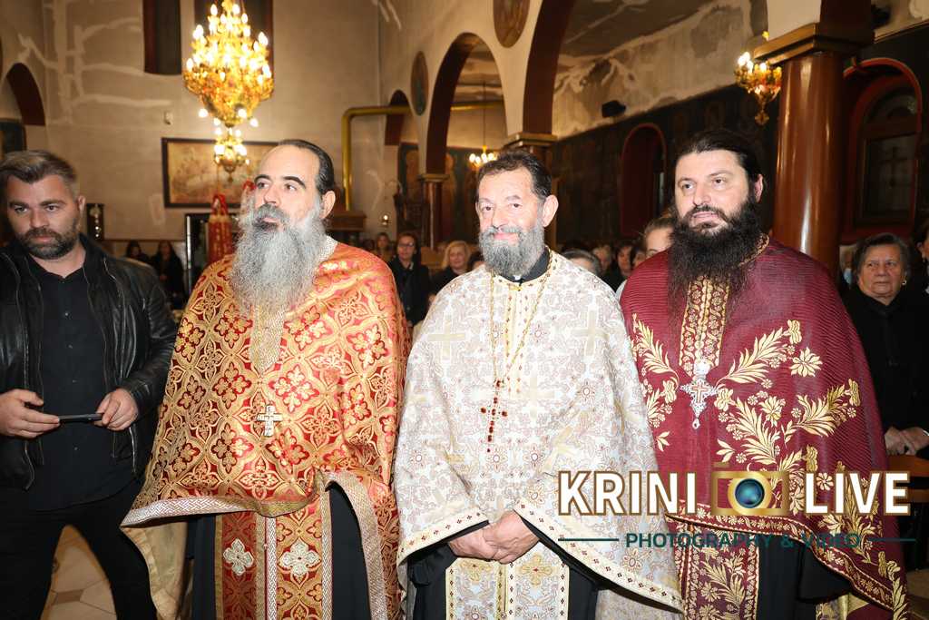 Οι εορταστικές εκδηλώσεις ξεκίνησαν το απόγευμα της Κυριακής με την τέλεση του Αρχιερατικού Εσπερινού, μετ’ αρτοκλασίας και Θείου Κηρύγματος από τον κ.κ. Χρυσόστομο.