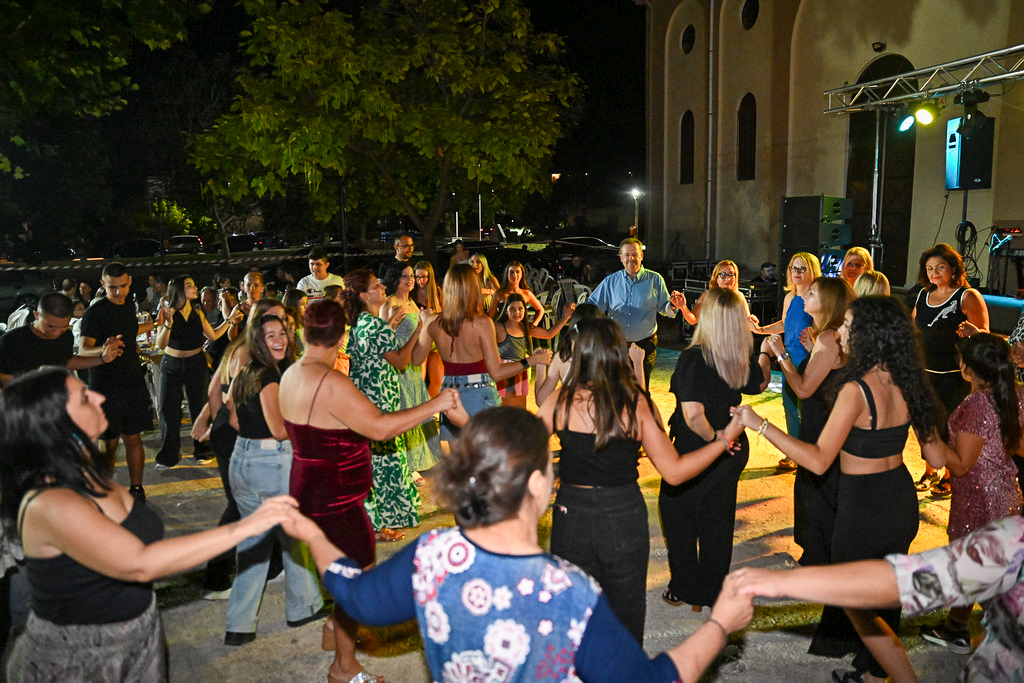 Το χωριό, που ακόμα προσπαθεί να σταθεί στα πόδια του μετά τη μεγάλη καταστροφή της κακοκαιρίας «Ντάνιελ», γέμισε φως, μουσική και χαμόγελα.