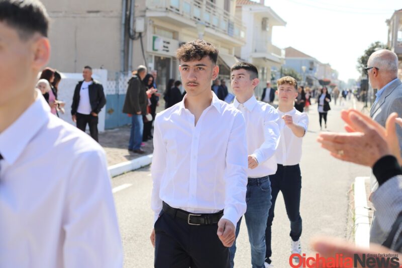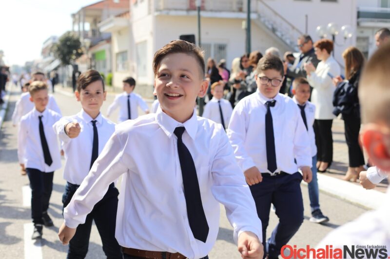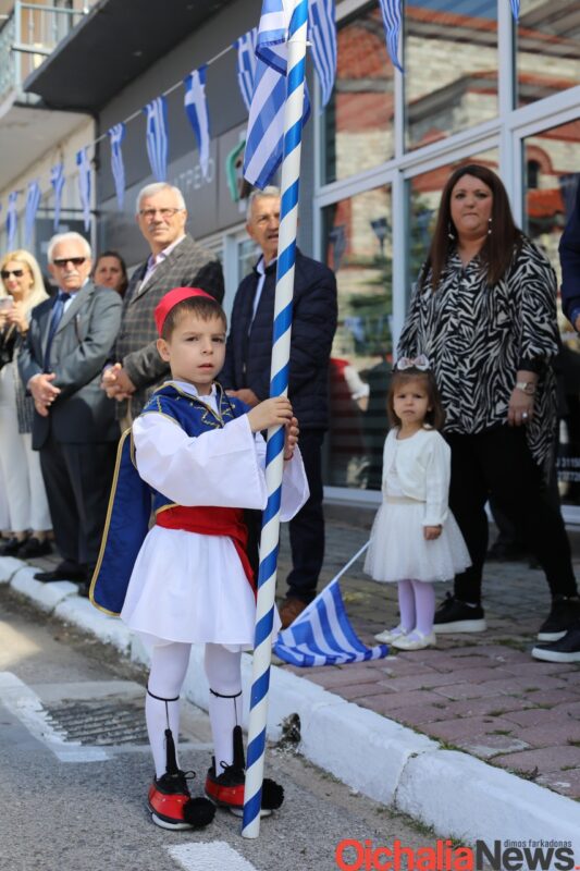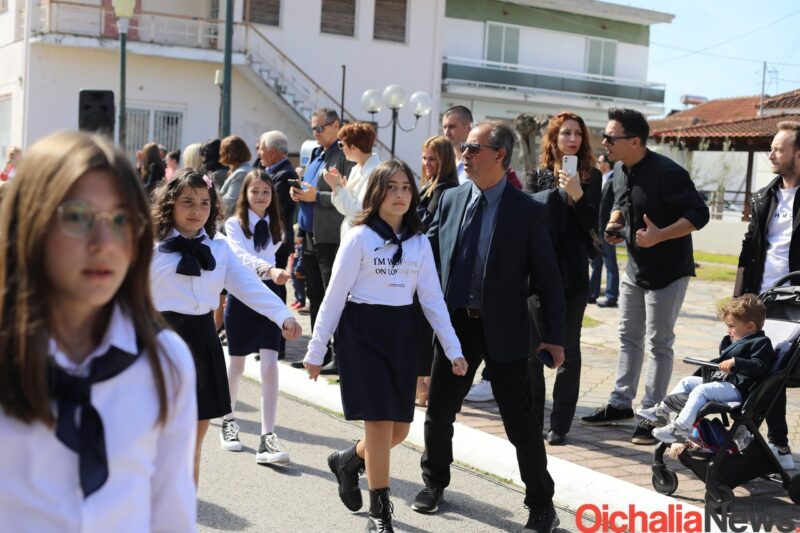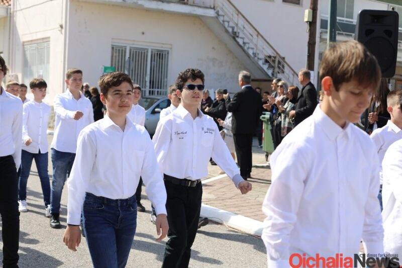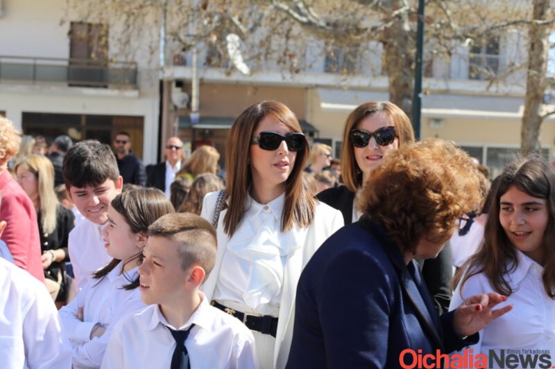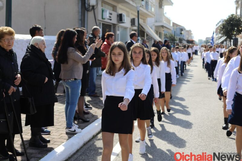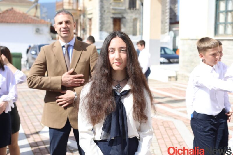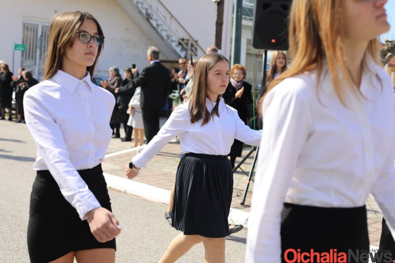 Αρκετός ήταν κόσμος που και φέτος γέμισε το κέντρο της Οιχαλίας για να καμαρώσει την νέα γενιά και να τους χειροκροτήσει κατά την παρέλαση των σχολείων.