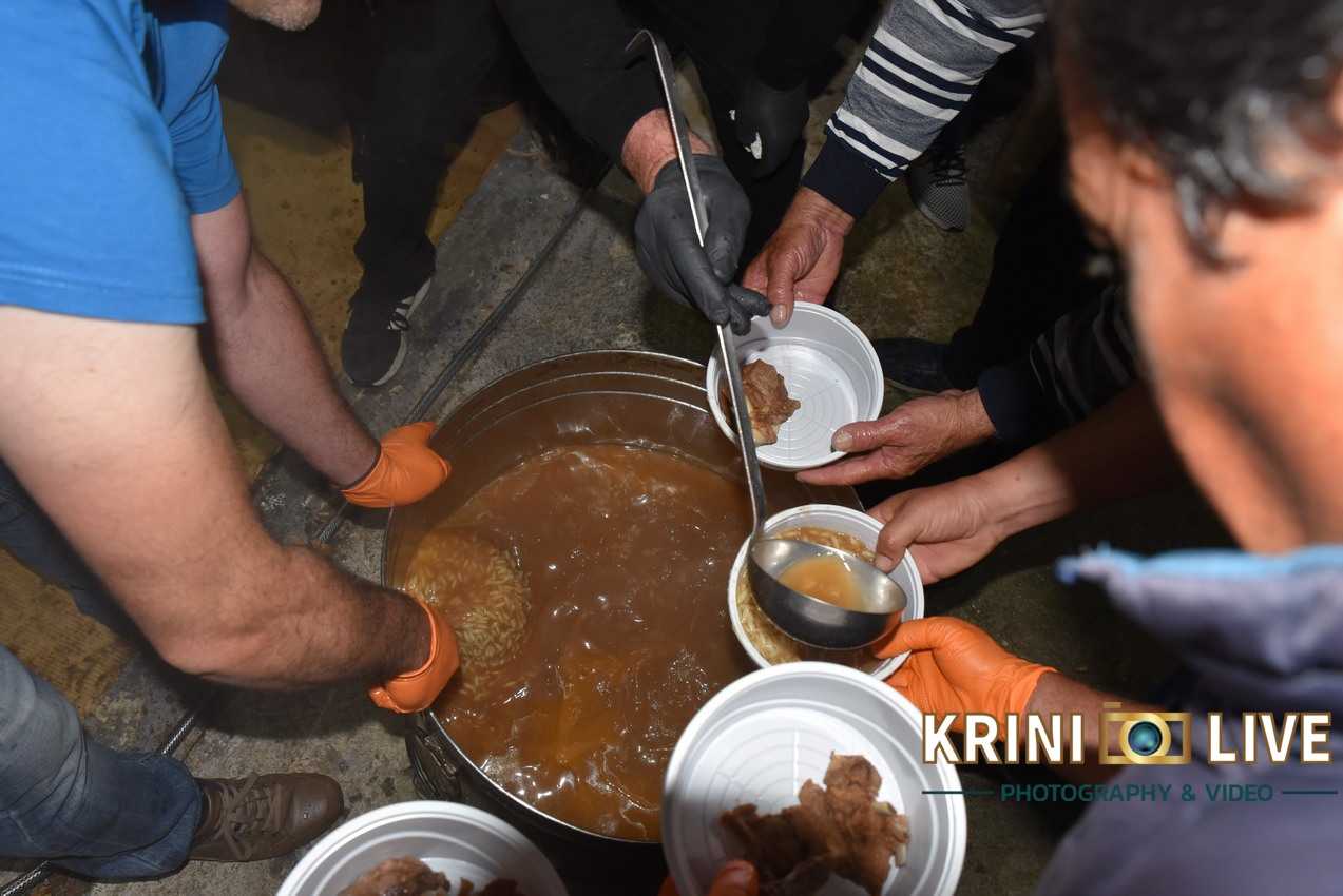 Κατά την πρώτη ημέρα των εκδηλώσεων προσφέρθηκε η παραδοσιακή φιλοξενία προσφορά των κατοίκων της κοινότητας οι οποίοι βοήθησαν στο μαγείρεμα αλλά και στην διανομή της.