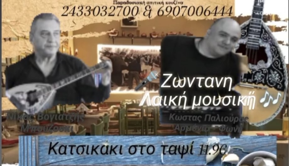 Ζωντανή λαϊκή & ρεμπέτικη μουσική την Κυριακή στο Μαγειρείο «Νηοχώρι» στην Οιχαλία