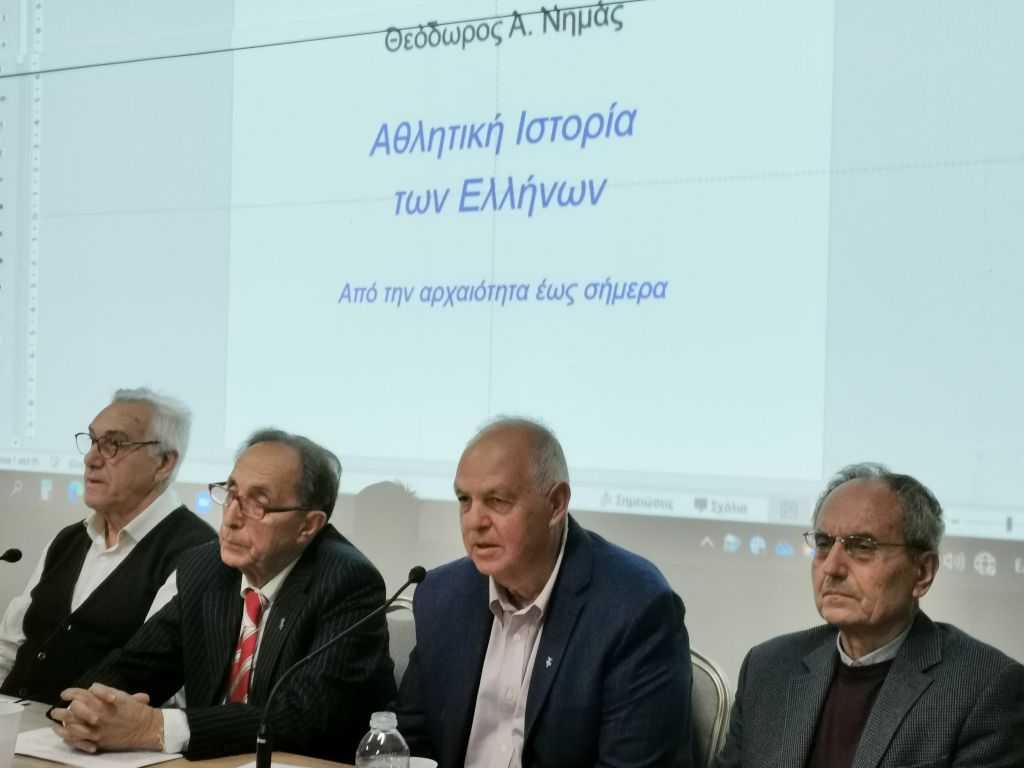 Η πρόεδρος του ΣΕΓΑΣ, τρικαλινή πρ. παγκόσμια πρωταθλήτρια του ακοντισμό κ. Σοφία Σακοράφα τόνισε ότι εάν η αρχαία γνώση ήταν η συνισταμένη του παγκόσμιου αθλητισμού, τότε η φράση “νους υγιής εν σώματι υγιή”, αντικατοπτρίζει τη σχέση αθλητισμού και πολιτισμού. Ευχαρίστησε τον κ. Νημά για τη συγγραφή του βιβλίου επισημαίνοντας ότι περιέχει ερεθίσματα “για να εντρυφήσουμε περισσότερο στο τι συνέβη και τι συμβαίνει στο παρόν και το παρελθόν, αλλά και το τι μπορεί να γίνει στο μέλλον”.