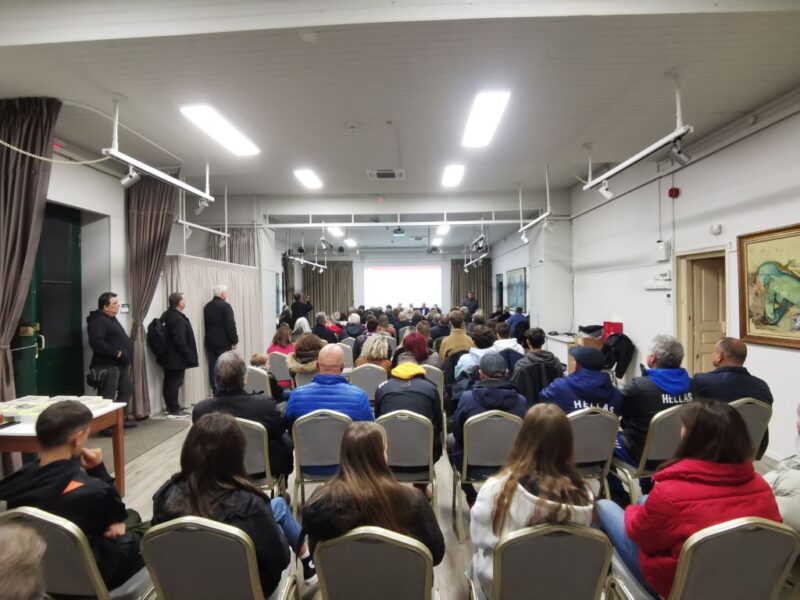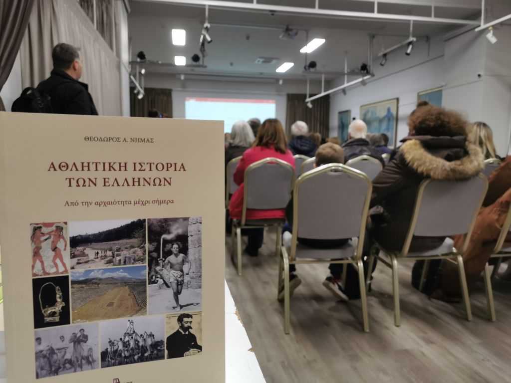 Στην κατάμεστη αίθουσα του Λαογραφικού Μουσείου, με στελέχη του ΣΕΓΑΣ, ανθρώπους του αθλητισμού, φοιτητές και φοιτήτριες του ΤΕΦΑΑ Τρικάλων, τρικαλινούς και τρικαλινές, μίλησαν και παρουσίασαν το βιβλίο οι κ. Δημήτριος Σούλας, ομότιμος καθηγητής του ΤΕΦΑΑ Τρικάλων και ο κ. Λεωνίδας Χατζηαγγελάκης, αρχαιολόγος – επί τιμή έφορος Αρχαιοτήτων Δυτικής Θεσσαλίας. Τον συντονισμό έκανε το ιστορικό στέλεχος του ΣΕΓΑΣ και του ΓΣΤ κ. Δημ. Χαχάμης. Παρέστη επίσης ο πρ. Νομάρχης Τρικάλων Στέφανος Πατραμάνης.
