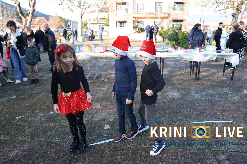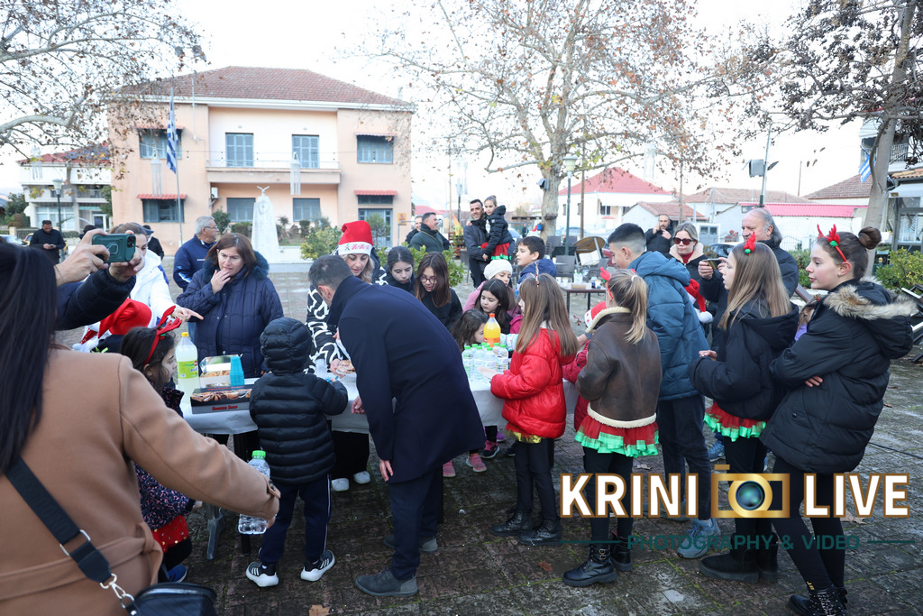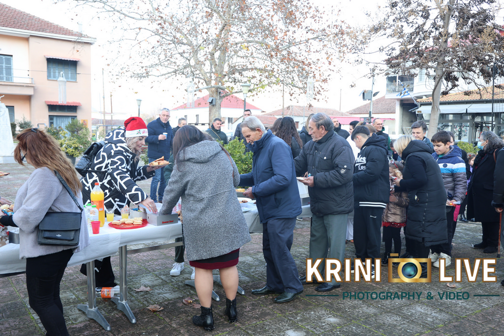 Ακολούθησε γιορτινός μπουφές που ετοίμασαν οι μαμάδες για τα παιδιά και τον υπόλοιπο κόσμο και φυσικά ο Άη Βασίλης ο οποίος έφτασε στην πλατεία του χωριού με έναν σάκο γεμάτο δώρα για όλα τα παιδάκια του χωριού.