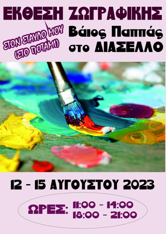Τα έργα του σε ένα διαφορετικό σημείο που δεν έχουμε συναντήσει θα παρουσιάσει για μια ακόμη χρονιά, ο συντοπίτης ζωγράφος με καταγωγή το Διάσελλο, Βάιος Παππάς. Η έκθεση θα φιλοξενηθεί στο στάβλο του ζωγράφου, και τιτλοφορείται Ποτάμι.