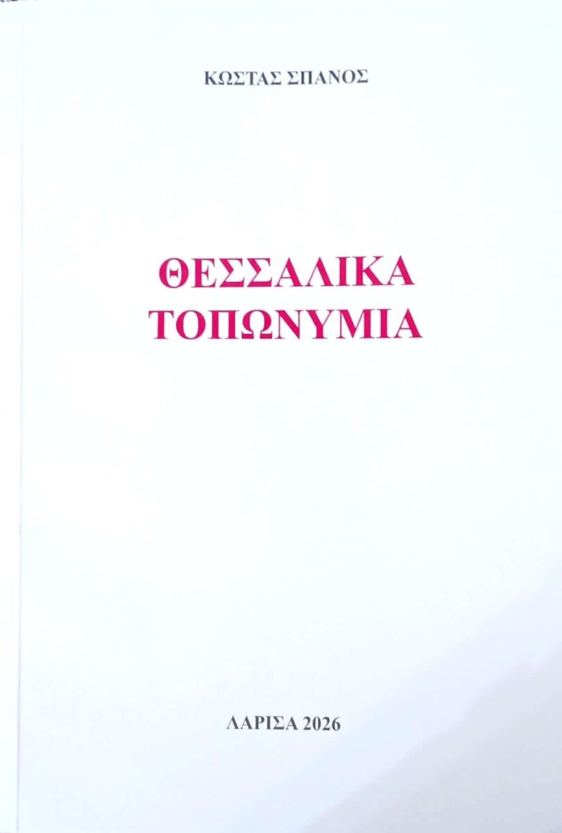 Με ιδιαίτερη χαρά ανακοινώνουμε στους αναγνώστες την έκδοση του νέου βιβλίου του ιστορικού και ερευνητή Κώστα Σπανού, με τίτλο «Θεσσαλικά Τοπωνύμια», ένα έργο που φιλοδοξεί να φωτίσει τις ρίζες και τις λέξεις του τόπου μας μέσα από τα ονόματα των χωριών, των περιοχών και των τόπων της Θεσσαλίας.