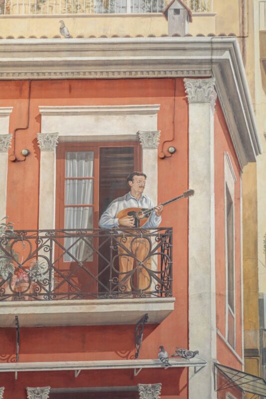 Η τρισδιάστατη τοιχογραφία «Ο Τσιτσάνης στο μπαλκόνι»/Photo: Αμαλία Κωβαίου