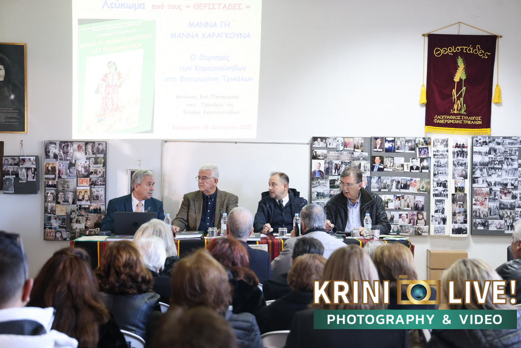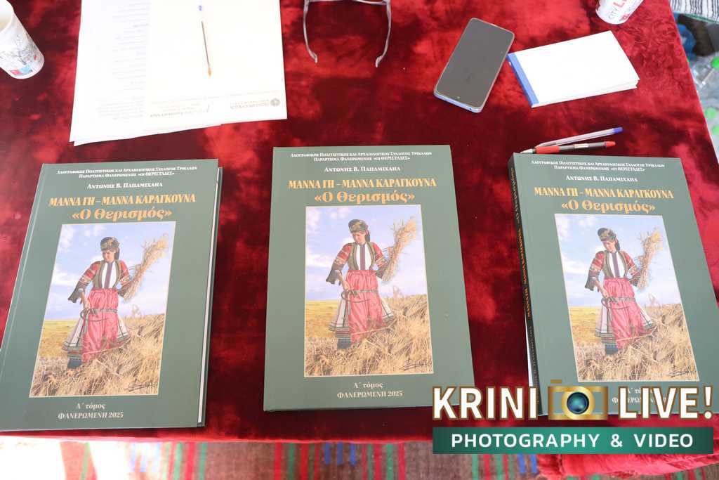 Με απόλυτη επιτυχία πραγματοποιήθηκε η λαογραφική και πολιτιστική εκδήλωση που ήταν αφιερωμένη στη μνήμη, την παράδοση και τη «μάνα γη», στη Φανερωμένη Τρικάλων, με αφορμή την παρουσίαση του λευκώματος «Μάννα Γη – Μάννα Καραγκούνα: Ο Θερισμός».