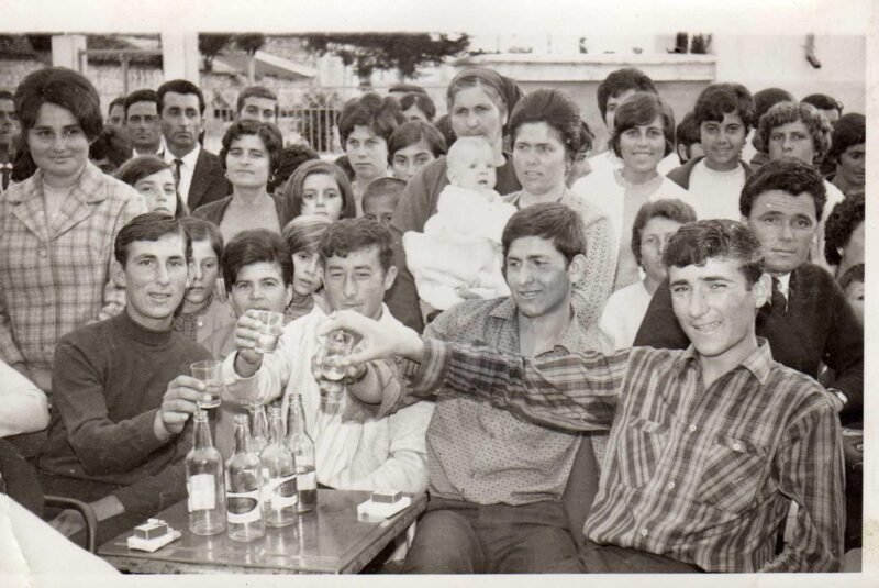 Σε αυτό το σπάνιο φωτογραφικό ενσταντανέ, που αποπνέει τη ζεστασιά μιας άλλης εποχής, απεικονίζεται η αυθεντική κοινωνική ζωή του χωριού: τότε που οι άνθρωποι ήταν ίδιοι, ενωμένοι και γλεντούσαν χωρίς προσχήματα και διαχωρισμούς. Ένα τραπέζι ήταν αρκετό για να χωρέσει μια ολόκληρη παρέα. Μια κοινότητα.