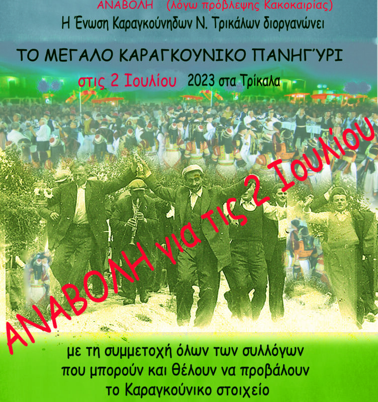 Αναβάλλεται εξαιτίας των άστατων καιρικών συνθηκών που αναμένεται να επικρατήσουν την Κυριακή το «Μεγάλο Καραγκούνικο Πανηγύρι», που διοργανώνει η Ένωση...