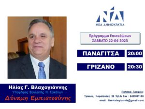 Χωριά του Δήμου Φαρκαδόνας θα επισκεφτεί το απόγευμα της Τρίτης, ο υποψήφιος Βουλευτής Τρικάλων της ΝΔ, Ηλίας Βλαχογιάννης.Ο κ. Βλαχογιάννης...