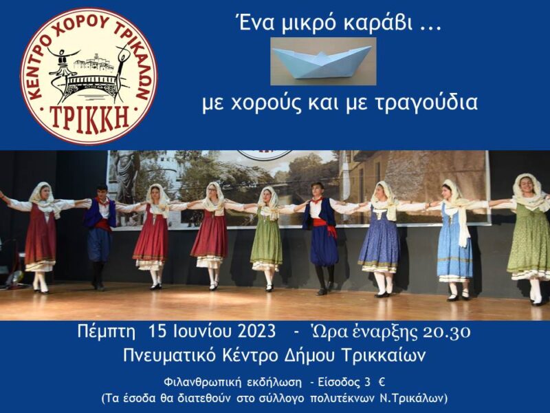 «Ένα μικρό καράβι…με χορούς και με τραγούδια» από το Κέντρο Χορού Τρικάλων «ΤΡΙΚΚΗ» Τίτλος της μουσικοχορευτικής εκδήλωσης «Ένα μικρό καράβι...