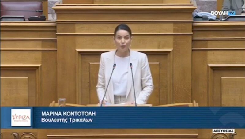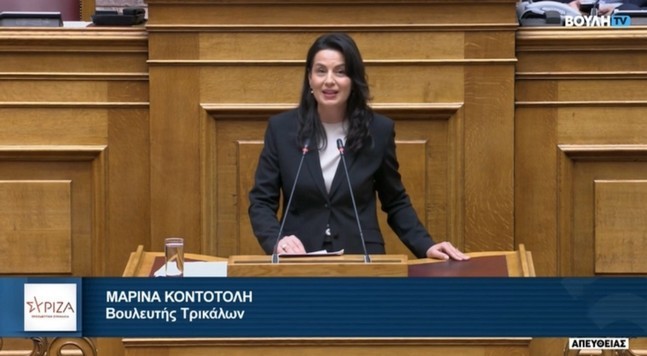 Δελτίο Τύπου  Η Βουλευτής Τρικάλων του ΣΥΡΙΖΑ- ΠΣ Μαρίνα Κοντοτόλη  ξεκίνησε την ομιλία της εκφράζοντας την αμέριστη αλληλεγγύη της στους...