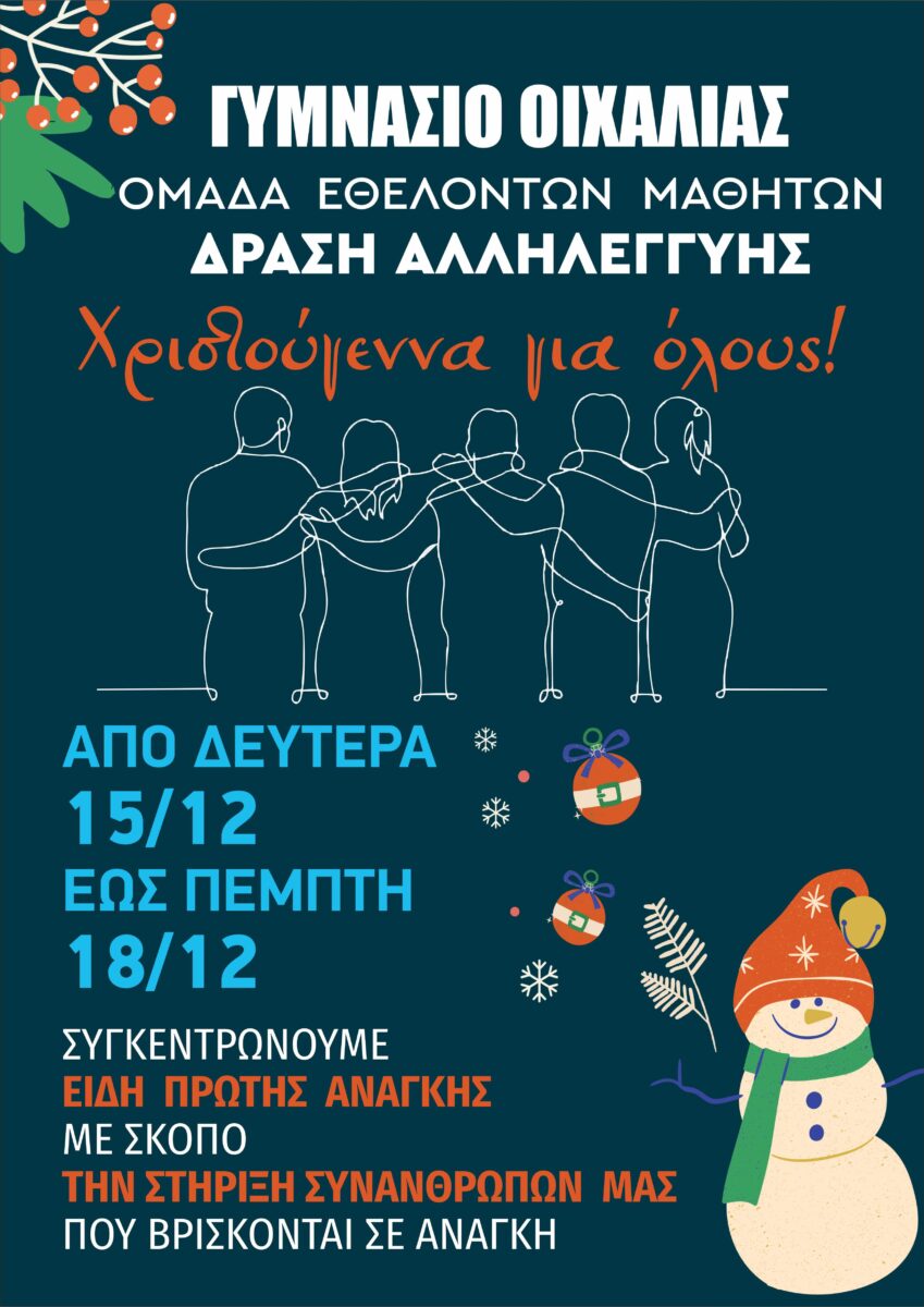 Σε μια ζεστή, εορταστική και βαθιά παιδαγωγική ατμόσφαιρα πραγματοποιήθηκε η Χριστουγεννιάτικη Εκδήλωση του 2ου Δημοτικού Σχολείου Οιχαλίας, στέλνοντας μηνύματα αγάπης,...