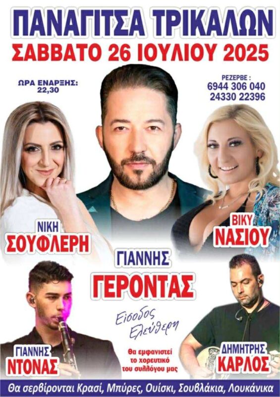 Η Παναγίτσα Τρικάλων φοράει τα γιορτινά της και μας προσκαλεί σε μια μαγευτική βραδιά διασκέδασης, το Σάββατο 26 Ιουλίου 2025,...