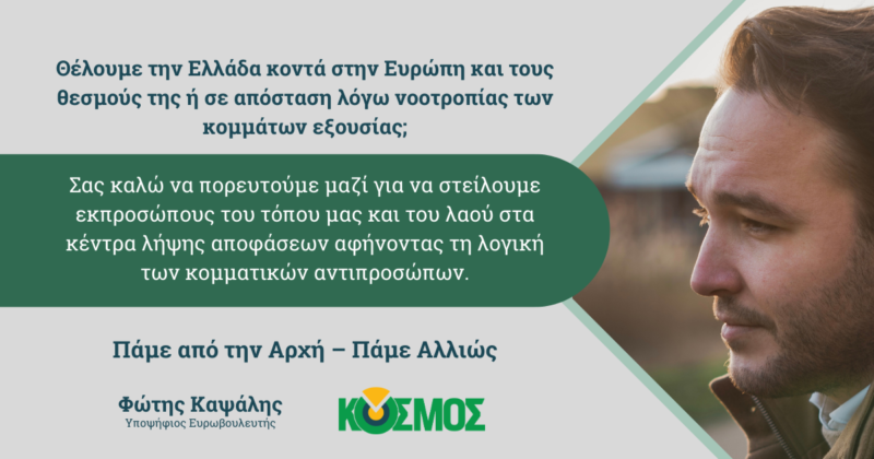 Πάμε από την αρχή – Πάμε αλλιώς. Δήλωση υποψηφιότητας Φώτη Καψάλη για τις Ευρωεκλογές με το Κόσμος