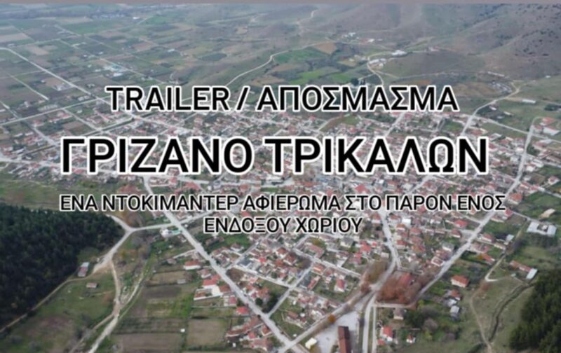 Με περηφάνια και συγκίνηση, ο Μορφωτικός Εξωραϊστικός Σύλλογος Γριζάνου παρουσιάζει στο κοινό το τρέιλερ του ντοκιμαντέρ-αφιέρωμα που γυρίστηκε πρόσφατα στο Γριζάνο Τρικάλων...