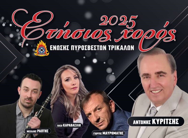 Η Ένωση Πυροσβεστών Τρικάλων σας προσκαλεί στον Ετήσιο Χορό 2025, που θα πραγματοποιηθεί το Σάββατο 1 Φεβρουαρίου 2025 στις 21:00,...