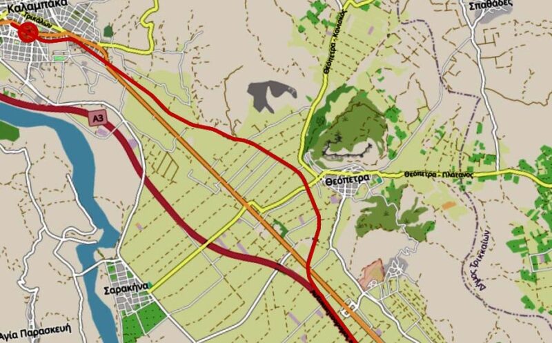 Στο τμήμα μεταξύ Τρικάλων και Καλαμπάκας, η εθνική οδός διασταυρώνεται δύο φορές με τη σιδηροδρομική γραμμή που συνδέει τον Παλαιοφάρσαλο...