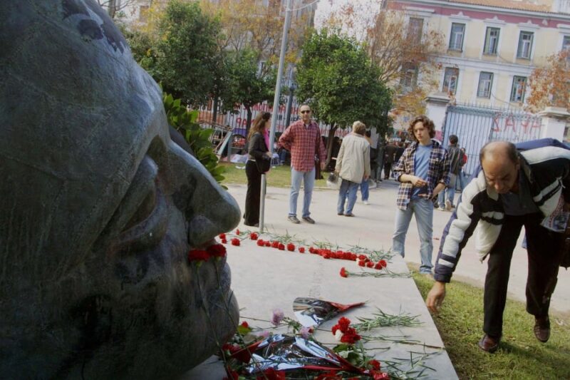 Η μεγάλη γλυπτή κεφαλή που βρίσκεται στο προαύλιο του Εθνικού Μετσόβιου Πολυτεχνείου έχει καθιερωθεί ως το σύμβολο στο οποίο άνθρωποι κάθε ηλικίας καταθέτουν ένα λουλούδι, αποτίοντας φόρο τιμής στους αγωνιστές του Πολυτεχνείου.