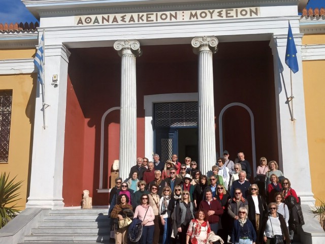 3) Κατόπιν επισκέφτηκαν το Αθανασάκειο Αρχαιολογικό Μουσείο του Βόλου, ένα από τα παλαιότερα Μουσεία της χώρας και μέχρι πρότινος το κεντρικό Αρχαιολογικό Μουσείο της Θεσσαλίας. Κτίσθηκε το 1909 με χρήματα που διέθεσε ο Αλέξιος Αθανασάκης από την Πορταριά του Πηλίου, έχει δε συνολικό εμβαδόν 870 τ.μ. και επτά χώρους έκθεσης. Για την στέγαση των πάρα πολλών αρχαιολογικών ευρημάτων των συλλογών του Μουσείου έγινε επέκταση του κτιρίου το 2004. Και εδώ ο κ. Λ. Χατζηαγγελάκης ενημέρωσε διεξοδικά, σε κάθε συλλογή, τους εκδρομείς για την ιστορία του Μουσείου και τα πλούσια εκθέματά του.